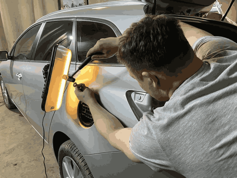 - استفاده از نور و گرما: در کنار این دو روش اصلی، گاهی از لامپهای مخصوص PDR (PDR Lights) استفاده میشود. این لامپها با ایجاد خطوط نوری خاص بر روی سطح بدنه همچنین، در برخی موارد، از دستگاههای گرمکننده برای انعطافپذیرتر کردن فلز در حین ترمیم استفاده میشود.